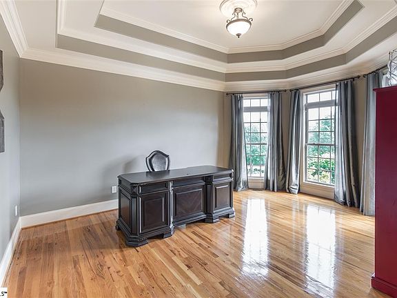 Gorgeous custom built 4BR/4.5BA all brick home located in the popular Griffith Farm subdivision. A two-story Foyer welcomes you with transomed entrance and lantern style lighting that makes an excellent first impression along with beautiful oak hardwoods that flow throughout the main level. Just off the Foyer to the right is a spacious Home Office adorned with a double trey ceiling, heavy molding and large bay window that allows plenty of natural light. On the left of the Foyer you will find an elegant Formal Dining Room which boasts a circular trey ceiling, ornate chandelier with medallion and bullnose chair railing, a perfect place to host those special family gatherings. The gourmet Kitchen has new high-end stainless steel appliances with five burner gas range, double ovens, convection microwave and side-by-side stainless refrigerator. It also features beautiful custom cabinetry with granite counters, custom tile backsplash, a built in desk area, large pantry and Breakfast area with triple windows overlooking the outdoor living areas. Friends and family will also enjoy gathering in the centrally located 2-story Great Room which is anchored by a gas fireplace with stacked stone surround flanked by windows that make this area light and bright. The oversized Master Suite is on the main level and features a triple trey ceiling, large bay window seating area and Master Bath with his and her vanities, private water closet, large jetted tub, custom tile walk-in shower with multiple heads and dual custom his and her walk-in closets with built-ins. The Large Laundry Room has extra storage space, cabinetry and a handy granite folding table. Upstairs, you will find three additional bedrooms with large closets and three full baths, a large bonus room which is perfect for a man cave, a 5th bedroom or playroom! Do not miss the walk-in attic storage upstairs as well. . You'll not only find what you're looking for inside, but outside there are other wonderful features you've been searching for, such as a side entry 3-car Garage with remote access and screened Porch. A fully fenced backyard offers an inviting Rear Deck and patio that is perfect for outdoor entertaining or enjoying a beautiful Carolina day around the fabulous in-ground custom salt water pool. Security, central vacuum and irrigation systems.