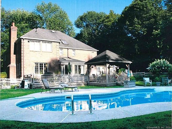 Stately Colonial situated on a professionally landscaped 1.52 acres boasts many french-style influences. Enter through the double doors and be greeted by the large foyer with elegant winding staircase and new hardwood floors in living room and family room. Large family room with floor to ceiling gray stone fireplace, formal dining room, and custom eat in kitchen with an over-sized island, stainless steel appliances, two dishwashers, bar sink, double ovens, and granite counters make this home ideal for all your entertaining needs. Located off the kitchen is a mud room w/ laundry area leading to a 3 car garage. Retreat into the glass enclosed four season sun room overlooking the backyard. Vacation from home all summer long on the multi-tier deck, gazebo, and kidney shaped pool while soaking in the sun. Second floor with large master bedroom & over-sized master bath. Plenty of closet space. Three additional & generously sized bedrooms with Jack and Jill bathroom, complete the second floor. Convenient to highways and downtown New Haven. Award winning school system!