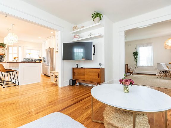 The LOCATION of this charming vintage 2 bedroom 2 bath cape can't be beat offering walkability right over the bridge to the thriving Winooski waterfront or head to nearby downtown Burlington. Step onto the covered porch with wicker swing to enter through the front door and take in the spacious open concept living/dining/kitchen rooms with beautiful wood floors throughout. Designer kitchen has been professionally renovated and now is opened up to living/dining space. Kitchen features a large butcher block island, ceramic backsplash, and newer stainless appliances. Along the back of the house is an inviting sunlit back porch with a wall of windows that overlook the landscaped low maintenance private backyard providing a perfect spot to garden and enjoy. The layout and flow is optimized with the main level bedroom featuring a space saving murphy bed and an additional spacious bedroom on upper level. Each floor has a bathroom boasting a full walk in shower down and a stand alone claw foot soaking tub upstairs. Additional upstairs highlights include a walk in closet and adjoining sitting area/flex nursery nook. Full basement with storage, utilities, and laundry. Walk down the block to Schmanska Park, nearby Centennial Woods, UVM, and maybe catch a Lake Monsters Game this summer, or stroll over in the other direction over the Winooski Falls to bustling sidewalk cafes and boutique shopping in Winooski. Open House SUNDAY 3/16 10am-1pm.
