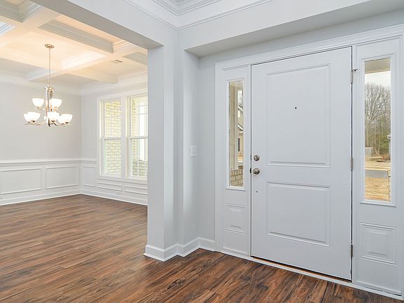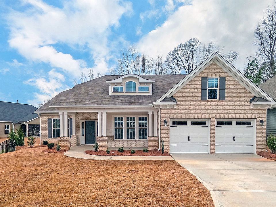 The Byrnes II is a one-story, Craftsman-style home with three bedrooms and two-and-one-half baths. The formal dining room is adjacent to the foyer upon entering the home. The family room and morning room are open to the kitchen. The kitchen features a large center island and a pass through to the dining room. The garage entry leads to a mud room with built in bench and cubbies and laundry room with deluxe cabinets. The master bedroom has a luxurious bath with split dual vanities, deep soaking tub and water closet. The master suite has a sitting room with a gas fireplace. The secondary bedrooms are across the family room from the master bedroom.