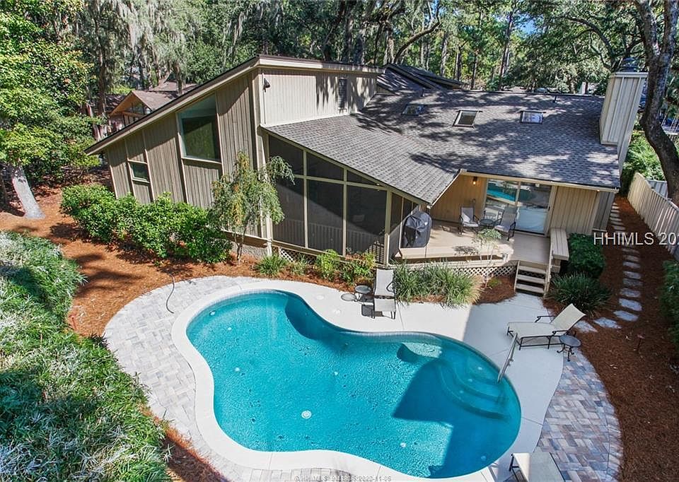 Don't miss this fabulous 4 bedroom/4 bath Beach House in Heritage Woods! Central location is close to the beach, Harbour Town, South Beach and Sea Pines Beach Club & Golf. However...you may not want to leave the private, sunny pool area with a pretty screened in porch. Home has two large masters, one on the first and one on the second floor -- each with large master baths and generous walk-in closets. The spacious laundry room is also set up as an office with built in desk. Plantation shutters, built-ins and sizable garage makes this home a 10!