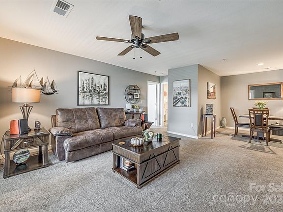 Discover a fantastic opportunity with this low-maintenance, immaculate 2-bedroom, 2 bath condo. The open floor plan features upgraded luxury vinyl plank (LVP) flooring in the kitchen, bathrooms, and foyer, complemented by upgraded carpet throughout. The covered balcony provides an inviting space to sit and relax, complete with a storage room/closet for added convenience. Located in the desirable Clover School District, this condo boasts an excellent location near restaurants, shopping, Charlotte, the airport, and, best of all, the lake. Community features includes: Business Center, Club House, Fitness Center, Outdoor Pool, Picnic Area, Playground and Recreation Area.