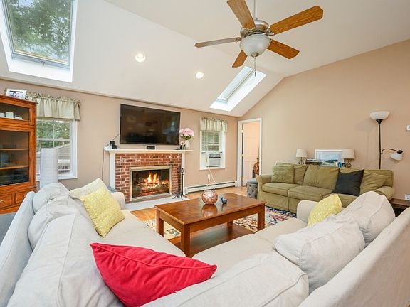 Opportunity to live so close to salt water in Seacoast Shores! This 2 bedroom, 1.5 bath ranch features a great room with wood burning fireplace, cathedral ceiling, skylights, ceiling fan and expansive window for tons of natural light. A dining room, 2 bedrooms (one with ensuite bath), kitchen, separate pantry, and half bath with laundry are also on the first floor. The lower level includes a large family room as well as 2 bonus rooms and a utility area with lots of storage space. The backyard has a patio and firepit and includes a storage shed for your tools and beach toys. Membership to the Clubhouse including the pool and tennis is available for purchase as well. Only 7 streets away from Bayside Beach, and with multiple association access ways to Child's River, Waquoit Bay, and Eel Pond, you will want to bring your kayaks, boats, and floats.