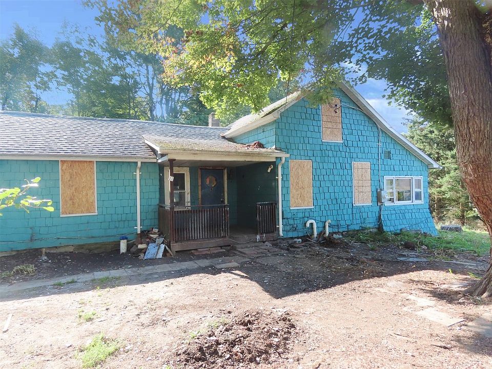 3 bedroom cape style home with cedar shingle siding, attached 1 car garage, cash sales only