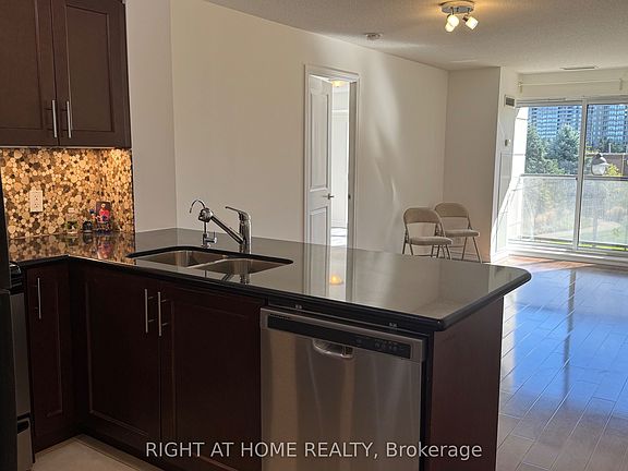 Welcome to this Naturally Bright, Well-Maintained and Carpet-Free 2+1 split bedroom, 2-bathroom modern condo unit featuring a spacious open-concept living and dining area. The modern kitchen features a breakfast bar area, granite countertops, stainless steal appliances, trendy backsplash, undermount sink and plenty of cabinet space. Custom built-in cabinetry in the den and the large walk-in closet in the primary room adds an incredible amount of additional storage space in this unit. Unwind after a long day in your very own large south facing 18 foot balcony overlooking the building's courtyard. 2 side by side parking spots and a locker are also included in the lease price. This clean and well-run building offers great amenities which have been recently updated and is conveniently located near shops, medical buildings/hospital, highways, shopping mall, GO Train and public transit at your doorstep. Note: staged photos have been taken from the previous listing, with consent.