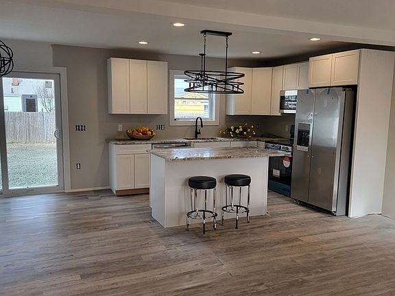 - Features: Flooring - Laminate, Countertops - Stone/Granite/Solid, Kitchen Island, Cabinets - Upgraded, Exterior Access, Open Floorplan, Recessed Lighting, Slider, Stainless Steel Appliances, Lighting - Overhead