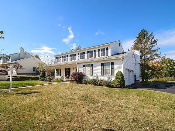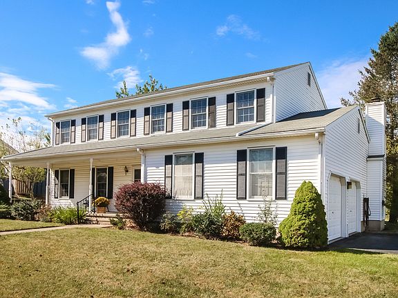 From this home's oversized, covered front patio and its beautiful backyard and deck, enjoy stunning mountain views Let the long days wash away by simply looking out your windows and viewing the breathtaking colors of the changing foliage. This East Meriden Colonial offers over 2300 square feet of living space. The large, bright kitchen is open to the family room which is flanked by a wood burning fireplace perfect for lighting on chilly fall and upcoming winter nights. The dining and living rooms offer more than enough space for holiday gatherings or for day-to-day separate spaces when needed. The master bedroom suite with full bath is more of an oasis, with the room's length running from the front to the back of the house No doing laundry in the basement here... First floor washer and dryer. Located on a low-traffic cul-de-sac in a desirable sidewalk lined neighborhood. Seconds from shopping, restaurants, schools, and both I-91 and Route 15 but it feels miles away from it all when you turn onto Harkins Lane. Make your private showing appointment today to see for yourself all this home has to offer.