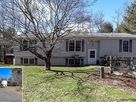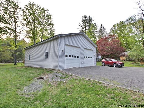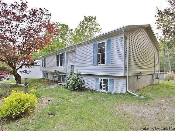 Welcome to Whip Poor Will Acres an expansive property with over 3 acres of land with beautiful views off a private road. A gorgeous Japanese Maple welcomes you to this charming raised ranch with 3 bedrooms 2 baths including a primary suite with full bath and tub made to relax and unwind. The eat in country kitchen has lots of prep and cooking spaces, equipped with wood cabinets, propane stove, a nice size pantry, and breakfast bar. Beautiful red oak hardwood floors throughout the main living spaces. Separate Laundry Area, and Energy efficiency in mind with 3 mini split units that heat and cool. The partially finished walk out lower level has a wood stove, plenty of storage and can provide even more livable square footage. The newer 4 car tandem garage perfect for a car enthusiast or car collector equipped with a car lift, heat and electric. An outdoor building with loft makes a great space for an artist's studio or office area. Live on your own estate with your own circular driveway, mature landscaping, outbuildings, a private deck, recreational trails, an above ground pool, and so much more all in the sought after area of Kerhonkson close to Ashokan Reservoir, Minnewaska State Park, Farmer's Markets, 20 minutes to Stone Ridge, 40 minutes to Kingston, and about 2 Hours to NYC.