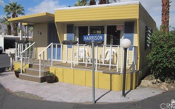 Ultimate South Palm Springs Area Location! Live in affordable Luxury or $$ Cash Cow Rental!$$ Fantastic Golf Course and Mountains Views! Beautifully Decorated,Updated and Sold Furnished ( Per seller's Inventory) Spacious 2 bedroom Open Plan, Living / Dining Room is Doublewide Size! (Expando,) Light Bright Great Panoramic Views (out windows,) Nice Large Front Deck (w/ Fab Views) off Living room, plus Huge 10x30 Covered Patio Decl with fantastic views and roller shades, Washer in Bathroom, Master Bedroom has tons of builtins and King Size bed, Updated Kitchen with newer Appliances, very unique corner location, lovely landscaped yard with lemon, orange and grapefruit trees, flowers, drought tolerant, auto irrigation, New Energy Efficient Heat and AC Exchanger, Newer Evaporative Cooler, Outside Deck Party Fridge,Large Shed, Nice Carport Covered Parking, EZ Maint. colorful Landscaping, Pool, Spa, Cubhouse, and More! Great 55+ Park, Popular With Canadian Vacation Rentals, COME SEE IT!