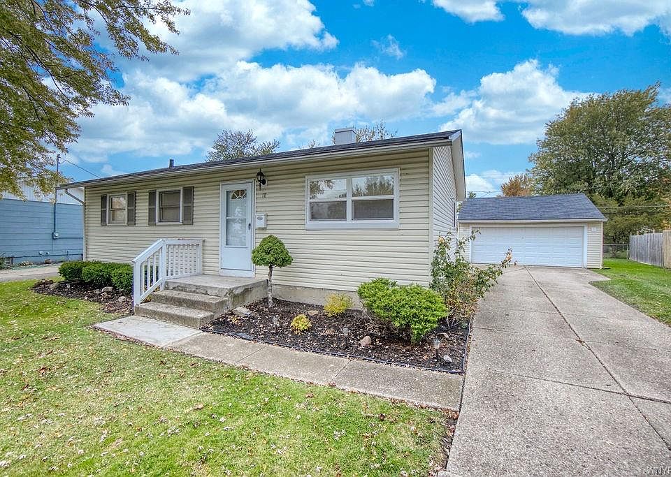 18 Harvington Road is MOVE IN READY! Large living room with new carpeting. Beautifully remodeled eat-in kitchen with new: flooring, cabinets, countertops, backsplash and fixtures. Amazing bathroom with new: flooring, bath surround, double sink vanity, and fixtures. All three bedrooms all with new flooring. Third bedroom could easily be used as a dining room. Freshly painted throughout. Dry basement has been freshly painted and has glass block windows. More updates include: energy efficient furnace, tankless hot water tank, windows and architectural roof on the house. Exterior features include: vinyl siding, two car garage, patio area and large backyard. This RANCH will not last⦠schedule you appointments today!