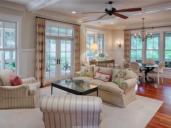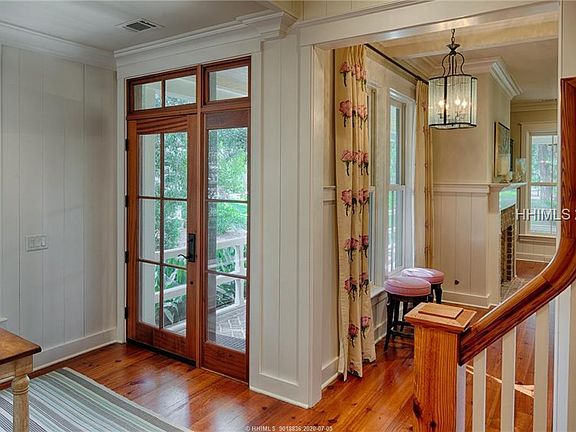 Expansive porches and a charming courtyard welcome you to this classic home located in the South Wilson area of Palmetto Bluff. With 3 ensuite bedrooms in the main home and an additional bedroom/bath located above the garage, 18 Hearth Street is perfect for a primary or vacation home. The open floor plan features solid heart pine floors, gourmet kitchen, main floor den, outdoor grilling area, backyard fireplace, second floor sitting/office area, mature landscaping and more. The home overlooks the Stallings Island Park and is located walking distance to all Palmetto Bluff has to offer -shopping, golf, tennis, pickle ball, restaurants and more.