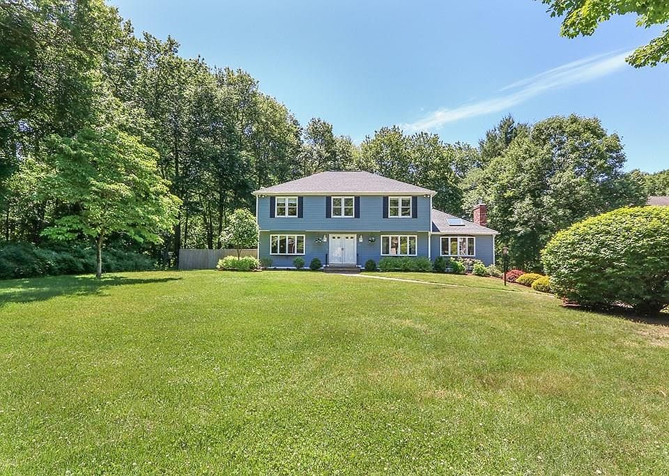 Fabulous family neighborhood. This beautiful 4 bed, 3.5 bath Colonial is located in desirable Hampton Estates on a quiet cul-de-sac. This move-in ready home features gorgeous hardwood floors throughout the 1st floor with a large eat-in-kitchen including granite counters, breakfast area with bay window, tons of storage connecting easily to the oversized family room with brick fireplace, vaulted-beamed ceiling & sliders exiting to the oversized deck overlooking the beautiful, private backyard. The 1st floor also includes large living and dining rooms. The layout is perfect for families and entertaining. The 2nd floor features a large master suite with walk-in closet, glass shower & double sinks as well as 3 additional large bedrooms & hall bath. The finished lower level has space for a home office, gym & rec room & is perfect for kids, friends & guests. This level also includes a full bath. Sharon boosts a top school system, offers easy highway access & adorable downtown. Many updates!