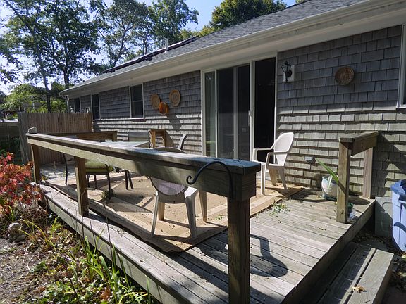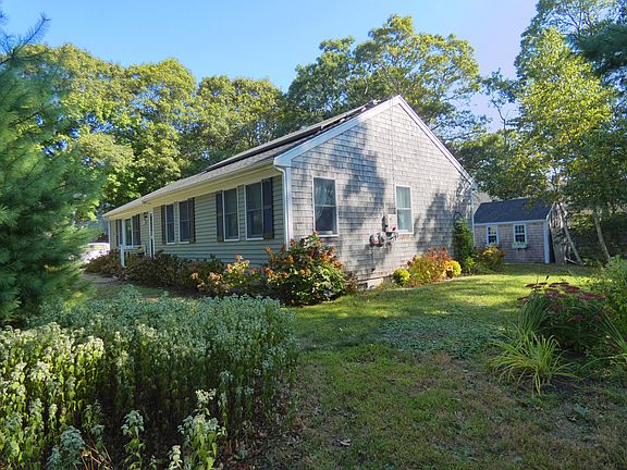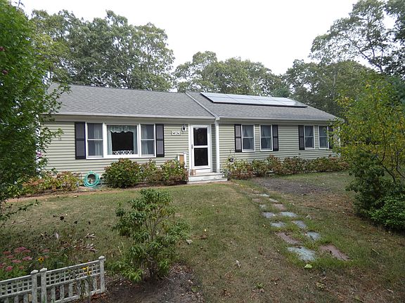 This delightful move in ready ranch is sited in the West Hyannisport/Centerville area with convenient access to Craigville Beach a stroll or a bike ride away. This 2 BR 2 Bath 1250 SF home has a contemporary feel and is newer than many of the homes in this area. It is tucked away on a dead end street, so has a private feel. It has vaulted ceilings in the Living/Dining/Kitchen for an open airy feeling. Wood floors in the LR/Dining and hall. It was built in 1997 and has newer gas HVAC (2-3 years) & on demand Navien gas hotwtr heater (2-3 years), roof (2-3 years old). It is a 'double 'level lot -twice as big as others in the immediate vicinity, mostly fenced and has small gardens with a sweet path to enjoy the blooms and plantings. A cute garden shed graces the back yard too. Finished recreation room in the basement , plus ample unfinished basement space for storage or work areas if desired. The home has leased solar panels, to be assumed by buyer-have details. Newer appliances.. See complete walkthrough video under virtual tour . All information to be verified by buyers and buyer agents. Passing Title V. Taxes may vary by residency.Professional. photos to come by Friday.