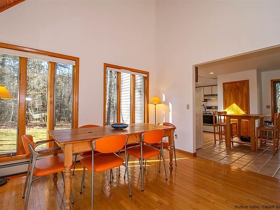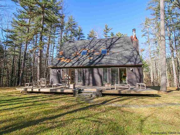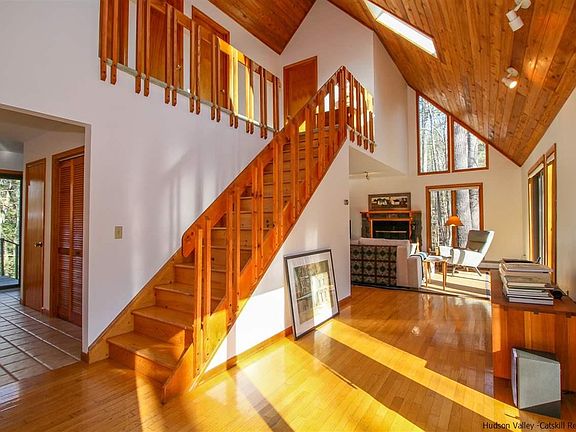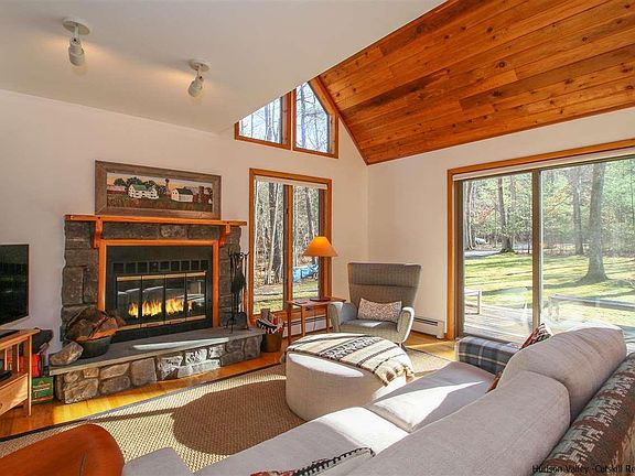 Remarkably comfortable and private contemporary in Accord's sought-after Raycliff Estates. Wood-clad cathedral ceilings add a rustic and airy feel to the serene interiors. Large kitchen offers plenty of space for group cooking, and large dining and living areas make entertaining a pleasure. Stone wood-burning fireplace is the ideal place to cozy up as winter approaches. Bedrooms both have balconies overlooking the rear of the property and the neighbor's stream.