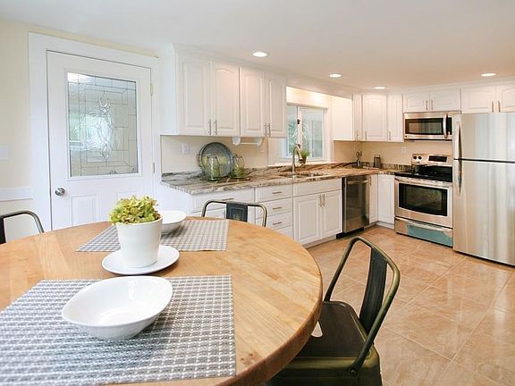 Much larger than it looks! This oversized, renovated 4 Bedroom Cape offers all the updates! Kitchen, bathrooms, windows, electrical, plumbing, lifetime metal roof, flooring, and an ENTIRE second floor Masterbedroom suite, with it's own spa sized, tiled bathroom, dressing room and excercise room/ home office ! Large sunroom off the kitchen has all new flooring and windows and could easily be heated for additional Familyroom/ Diningroom. Freshly painted inside and out. Hardwood floors. Nice sized level lot abuts acres of Town owned Land for privacy. Dead end street. Garage. Are you a Commuter?? Convenient to Rtes. 93 and 128 and Commuter rail station to Boston!