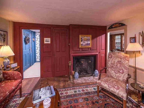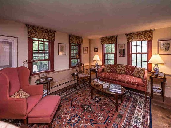 Classic 1760 antique colonial with tasteful blend of traditional elegance and thoughtful updates, set on a lovely, riverfront lot. It boasts a country kitchen, gracious living spaces, restored original trim work and handhewn beams, 20"+ wide pine flooring, original fireplaces throughout, recent addition of 30x30 1st floor master suite with private river side deck and office, huge library, 3 sunny bedrooms, bunk room and beautiful mature gardens. Includes a glorious riverfront deck and 42 ft-3 story detached barn.