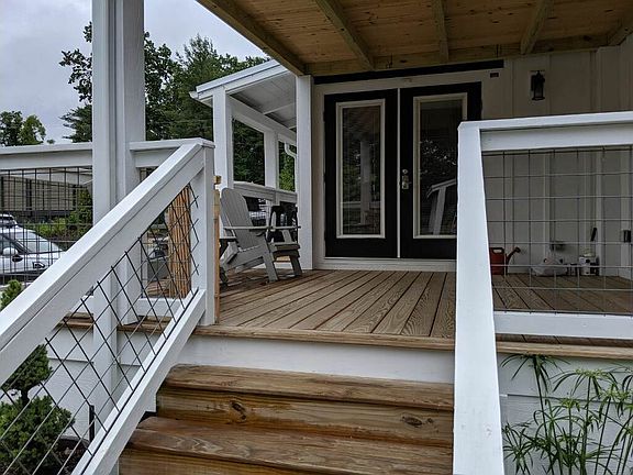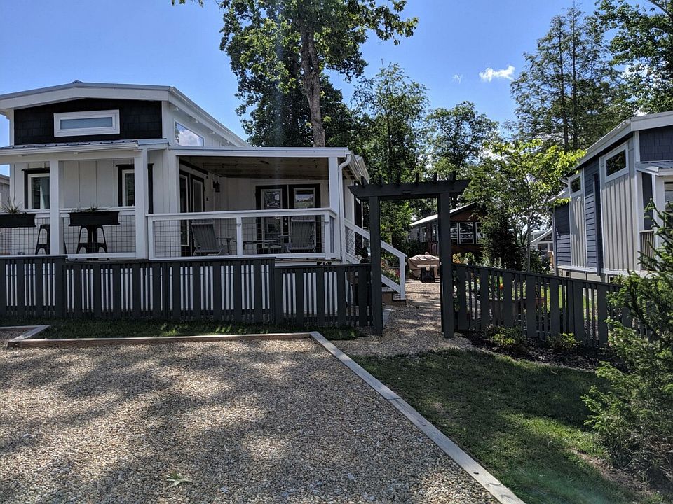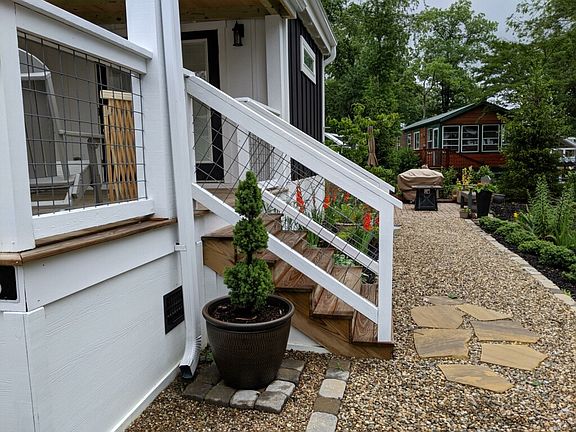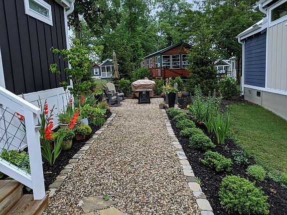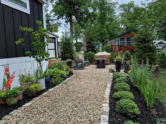 This beautiful two bedroom gem was built by one of the areas premier builders, Blue Ridge Log Cabins. The Silver Heron Cottage, features a stunning fenced in front yard with pergola entrance, the rock and flagstone pathway takes you to an elevated and covered 12 x16 deck. Move in further and you can't help but be drawn in by the amazing garden all leading to the quaint rear patio with gas fire pit. This backyard also includes a 10 x10 wooden shed, easy access to the community pool and Boccie court.Once inside you can't help but notice the vaulted ceilings, granite counters and easy care vinyl plank flooring. The beautiful (painted) natural wood 1 x 12 tongue and groove walls frame a main floor master bedroom and entire house. The steps to the loft are also crafted to suit a duel purpose. Each step is crafted to provide extra shelving as well support to the loft area, subtle handrail provides ease of climbing. The main level is 543 sq. ft. and the loft provides an extra 160 sq. ft. of flexible space perfect for extra storage, guest sleeping, or relaxing. The Master bedroom offers ample space for a queen or king size bed, lots of storage, a His & Her closets, ceiling fan and perfectly sized bureau in between. The second bedroom/living room is a large 11x11 in size, offers vaulted and beamed ceilings with ceiling fan. The kitchen is well appointed with high-end granite counter tops and stainless steel appliances. This must see cabin, is a village rarity and located within for The Upper Highlands Neighborhood.
