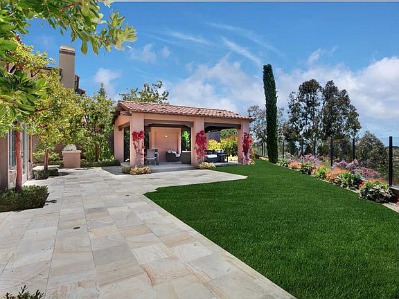 Privately-situated down a meandering lane on one of Pacific Ridge's most spectacular lots, this marvelous home offers the serenity and panoramic ocean, hillside, and sunset views that you have been looking for. Comprised of 4 bedrooms, 4.5 bathrooms, the nearly 3,600 s.f home has a wonderful Mediterranean design with modern flair. Enjoy abundant natural light within the home and seamless transitions between the generous indoor and outdoor entertaining spaces. A beautifully-upgraded gourmet kitchen, large family room, cozy living room, and formal dining room with two-story ceiling light make this floor plan highly desirable and incredibly versatile. Notable rear yard amenities include: custom pool and spa with waterfall, outdoor fireplace, covered cabana with heaters and television connections, and a grilling station. A 3-car finished garage completes this spectacular home.