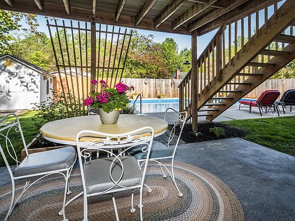 This well maintained home sits on a beautifully landscaped lot that includes birch trees, cedar trees which offer privacy, perennials and raised vegetable garden beds. The open floor plan features the kitchen and L-shaped cathedral ceiling living space that welcomes gatherings. The kitchen is designed with white quartz countertops, tile backsplash and has attractive cabinetry with decorative molding and new appliances. Just steps away is a dining area big enough to gather with friends and family and connects to the living room with a large picture window and whitewashed brick wall accent, all with brand new white oak hardwood flooring and cooled by centrally located mini split. As characterized by the raised ranch, a style of home with finished living space below the main floor, the lower level is centered around a brand new soapstone wood stove, is carpeted and can be for a multitude of uses, think family room, workout area or office space with built-in shelves. This lower level walks out onto an attractive patio offering plenty of shade on warm summer days. Totaling three bedrooms, 2.5 baths, the home includes a primary bedroom with a private bath. The 2-car garage, offers storage and a workbench area. Separate laundry room. The upper level deck, with newly added stylish privacy screen, overlooks the in-ground pool with its own privacy fence. Other exterior features include a shed, new driveway, concrete walkway and fully fenced back yard. Many updates since purchasing.