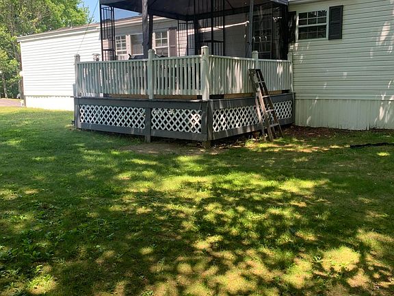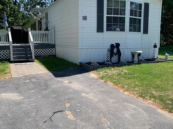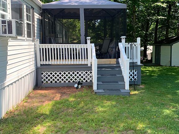 Tastefully and meticulously renovated mobile home located in a quiet country park setting with 700 ft. of shared waterfront to Sandy Bottom Pond. This cozy, well kept 2 bed 2 bath home features one level living, spacious bedrooms, large shed for all your storage needs, front deck as well as back deck with a gazebo, primary bedroom with en-suite bathroom with his and her sink and inviting bathtub as well as completely weatherized for this coming winter! No detail was overlooked with updates and improvements making this home feel virtually brand new! A true must see! A complete list of updates are available upon request!