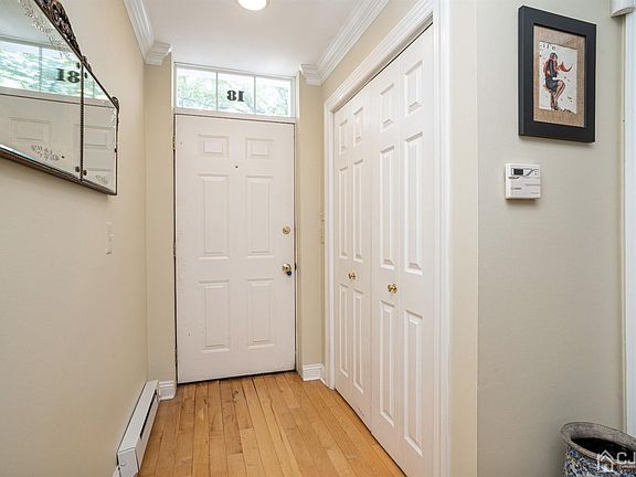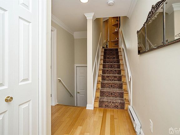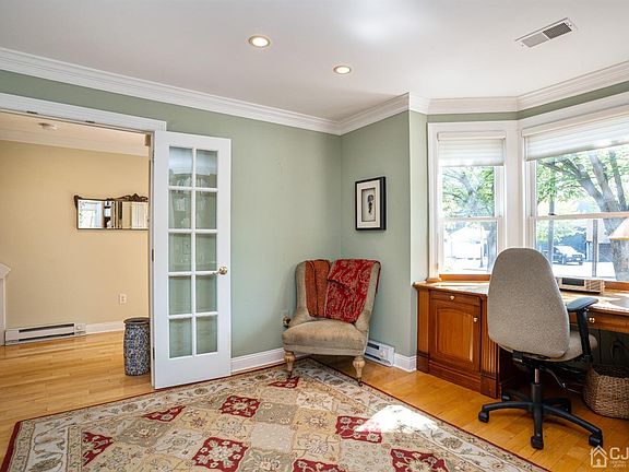 HUB City Delight. Fabulous end unit, Hiram Square Town Home awaits your immediate inspection. From the Hardwood open entry one is lead to a fabulous home office with designer built-ins and stunning powder room. Up a few steps is an open living room featuring vaulted ceiling with stunning gas fireplace and french doors that lead to a private deck.The banquet sized dining room boasts custom built-ins. The gourmet kitchen is open to the dining area, featuring white cabinets, marble tile flooring, Granite counters, backsplash & SS appliances. The bedroom level offers 3BRS and 2 full baths. The owners suite has it's own full bath, walk-in closet with organizers and coffered ceilings. Many quality amenities: HW flooring,custom crown moldings and wood finishes, custom window treatments, 2-car garage with automatic opener & more. Being in Hiram Square affords all the conveniences of a NYC Lifestyle. Perfectly located near all the happenings in New Brunswick.