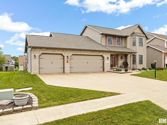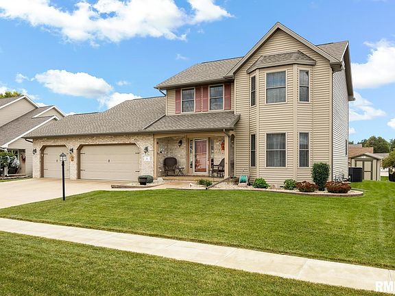 Immaculate, Custom built 4BR (possible 5th - no egress), 2.5 bath, 2 story home in popular Devonshire Estates on a quiet cul-de-sac. The front of the home features a formal sitting room with bay window and French doors. Open main floor living room w/vaulted ceiling & gas log fireplace is adjacent to the kitchen with solid Amish built, soft-close cabinetry, granite counters, updated appliances, pantry, eat-in area which opens to lovely sunroom (3-4 season), plus main floor laundry room with storage. 3 BR's up with huge primary suite; 2 closets, sitting area, and bathroom with shower/tub and double sinks. Finished basement has incredible additional living space, wet-bar, 4th BR, sound-proofed office or possible 5th BR, electric fireplace, and good storage. New roof 9/22, sharp, low maintenance landscaping featuring newer rock, all concrete recently water sealed, 6" exterior walls, 3 stall insulated garage. All appliances plus washer/dryer and 4 mounted tv's remain. Tasteful/neutral paint and flooring throughout. Don't miss your chance to see this beauty! Call for your private showing today!