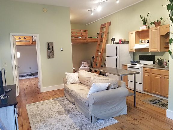 Up to date one bedroom, one bath with additional loft spaces, cathedral ceilings, hardwood floors, direct access to spacious yard, private parking right outside your door, no smoking on property, pets considered, shared washer/dryer, quiet building, fantastic downtown location, close to schools, shops and restaurants. 12 month lease term available. Owner pays all utilities except internet/cable.