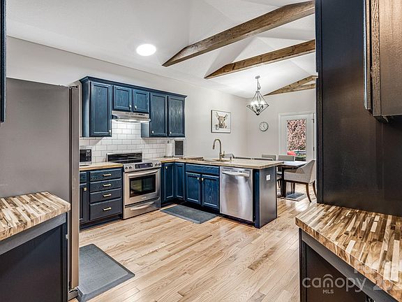 UPDATE : Townhome is safe! NO DAMAGE, no issues due to Hurricane Helene. Low maintenance living, perfect for someone who wants the convenience of move-in-ready without having to worry about lawn care and the exterior! Located an easy 18 minutes to downtown Asheville, 9 minutes to the airport, and 8 minutes to shopping at Biltmore Park Town Square. Remodel includes freshly laid hardwood floors, butcher block countertops, and brand-new fixtures and hardware throughout. The decks have been redone with Trex, they will last a lifetime! Brand new water heater installed in the fall. The main level offers refined living spaces, with beams added to the ceilings of the kitchen and living, the lower level presents a versatile bonus area limited only by your imagination. Currently in use as home office and gym but there are plenty of possibilities with an exterior entrance and one car garage (two car garage also on the main level, all recently epoxied). Schedule a showing and make it yours today!