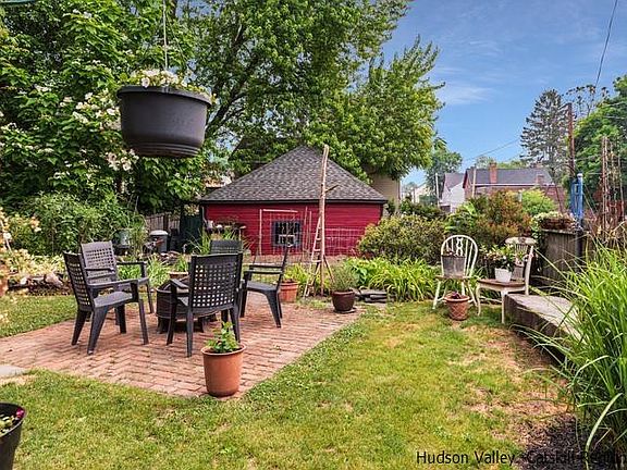Built in 1895 and lovingly maintained over the years, this 2,790 square foot townhouse is located in Kingston’s sought after Rondout area, just around the corner from the fantastic restaurants, galleries, and shops along the waterfront. The bright and airy home features four bedrooms, two full bathrooms, a full floor lower level workshop/studio space with a half bath, an extra-long back yard with lush gardens, and a two-car garage. There is plenty of space for any kind of gathering, creating, or entertaining! Many of the materials used in the home were upcycled by the current owners, pioneers in sustainable building. The main level of the home features a large open kitchen outfitted with lots of storage and an island perfect for cooking and entertaining. With an open floor plan, there’s ample space on this level for dining and gathering, and the reclaimed wood details add warmth and charm. Off the kitchen is a pantry with washer and dryer. Additionally, an office and full bathroom are tucked around the corner with windows facing downtown. Upstairs are four nicely sized bedrooms with beautiful light, large closets, lovely handcrafted woodwork, views of the surrounding neighborhood, and a full bath with a clawfoot tub. The lower level is currently used as a wood workshop, but could also be used for an artist studio, rehearsal space, a gym, or whatever else you can dream up! Located just 20 mins to the Amtrak train at Rhinecliff, New Paltz, Woodstock, and Saugerties, and 40 mins to Hudson. This is a great home base to explore everything the Catskills region is famous for. 90 minutes to the George Washington Bridge. Your perfect Kingston townhouse awaits!