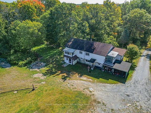 Welcome to 18 Horseshoe Lake Road a versatile property with room to grow. Set on 6.9 private, level acres offering has a peaceful pond, space for storage and plenty of potential. The location is hard to beat - just minutes to Horseshoe Lake, Parry Sound, local amenities and quick access to Highway 400. The raised bungalow has a welcoming feel starting with an enclosed porch featuring a hot tub and electric fireplace - a cozy spot to enjoy all seasons. Inside the foyer with its large closet leads to an open kitchen, dining and living area designed for easy everyday living. A full 4- piece bathroom, a second bedroom and a primary suite with its own enclosed porch complete the main level. On the lower level you'll find two covered entrances that lead into a spacious foyer or or bonus room. Shared laundry connects the space while a separate 1-bedroom, 1-bath in-law suite offers flexibility for extended family or potential rental income. This property is an opportunity to make your mark - whether you're looking for multi- generational living, investment potential or simply a quiet place to call home.