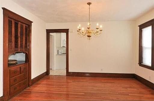 Gorgeous 2-bed/1-bath apartment for rent in Watertown. Light and bright eat-in kitchen with dishwasher, gas stove, fridge and plenty of cabinet storage space. Living room with fireplace and beautiful woodwork. Dining room with built-in hutch. Sunroom with lots of light. Two well-sized bedrooms can comfortably fit queens. Two (2) parking spaces, one garage, one driveway, included in rent. Washer/dryer hook-ups in-basement. Pets negotiable. Additional storage in-basement. Private back porch. Shared yard in the back. Available 12/1. First, last, security and brokers.
