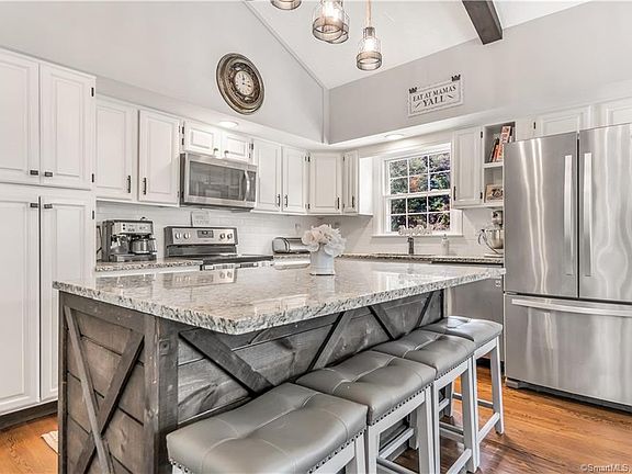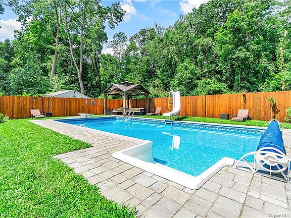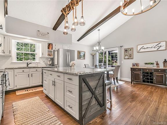 The Perfect Oasis! Completely remodeled 3-4 Bed Stunning Raised Ranch on a Beautiful Level Acre Lot. Chimney Heights, One of Bethels Sought After Neighborhoods! In the mail level youll find gleaming hardwood floors an open concept kitchen, dining and living area with tall ceilings and beautiful trendy wood beams and chandeliers. 3 bedrooms and a full bathroom with spa tub, and marble tiles throughout. The downstairs area features 4th large bedroom/Master bedroom/ Family room or playroom, with a closet, a fireplace, full bathroom (redone 2020). The downstairs French doors lead to a 600 Square foot stone patio overlooking the entire private backyard surrounded by trees and chirping birds. The backyard features an amazing heated in ground pool with a gazebo and a patio, recently installed elegant lighting for nighttime swimming. There is also a fire pit, for your enjoyment on cooler nights! There is also a fully fenced in garden with 6 raised beds and fruit trees! New septic system installed in 2020! New pool heater, pool pump and pool filter installed in 2019! All appliances in the house are under 2 years old! New driveway 2019! Walkway, patios, stone walls recently done 2019! Freshly painted and ready to move in! Minutes Away From Local Schools, Shops and Amazing Downtown Restaurants! A true gem in the heart of Bethel! Call now, it wont last!!!