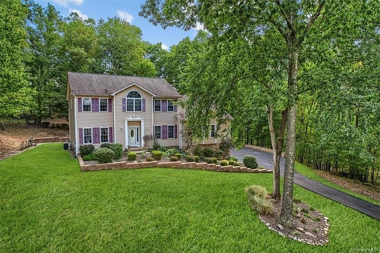 Perfection describes this meticulously maintained contemporary colonial, sitting up high at the end of this small Cul de Sac in Washingtonville Schools. As you drive up notice the stunning landscaping, retaining walls and stonework. You cant help but respect the pride of ownership. All rooms are bathed in sunlight for a happy home. The 2 Story entry welcomes you right in. Dual home offices, or use one office as a library playroom bar-you choose, gorgeous H W floors, french doors and 1 of 2 Pellet stoves! Spacious open floor plan, enjoy the granite kitchen offering a large pantry, GE Profile SS appliances, B I oven and microwave, cooktop, deep sink overlooking the views of your majestic backyard and a large breakfast bar. The open concept flows into the spectacular family room w vaulted ceilings, custom mantle, fireplace, sliding doors, designer paint and chair rail. Now for the tremendous bonus room 22'x23'9", another pellet stove, soaring ceilings, beautiful long windows and maple H W floors. The elegant dining room has enough space for the whole family at holidays, walnut inlay on the H W floors w chair and crown moldings. Upstairs is the most brilliant sitting area with a stunning Palladium window. The Master suite offers its own Spa bath and new frameless glass shower! Granite double vanity, jacuzzi and a WIC. Additional 3 spacious guest rooms, 2 w beautul new barn laminate flooring. Enjoy barbecues and parties on the deck and paver patio, surrounded by the private 2.4 acres. Great commuter location, close to bus to NYC and easy access to highway. Reverse osmosis water system, 2 car remotes, driveway redone, Burnham boiler serviced annually, gutter toppers, walkout basement, central air and vacuum. This property is truly so special-one of a kind. We don't get owners who love their homes like this everyday!