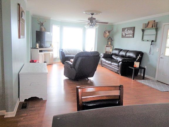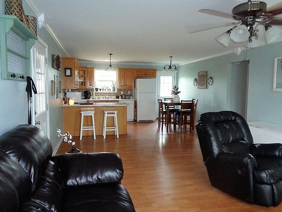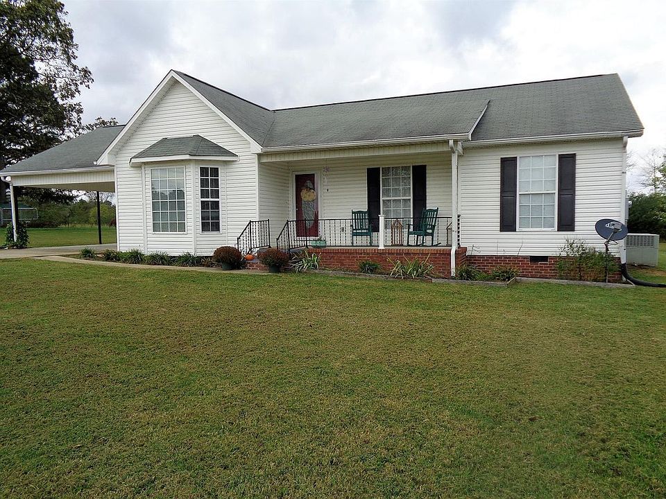 Spacious open popular floor plan, has family-dining-kitchen room with deck off kitchen, 3 bedrooms, 2 baths, well maintained, move in ready, separate utility, attached oversized carport, covered porch and deck. Quiet rural community.