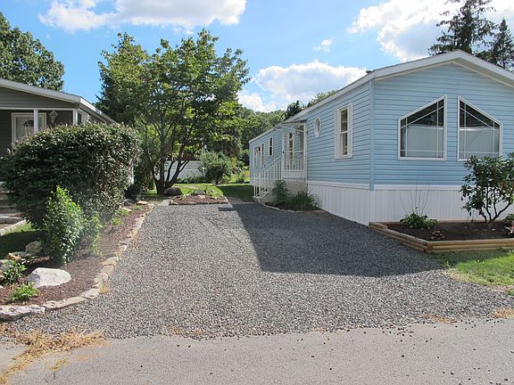This gorgeous two-bedroom, two-bath remodeled home offers shingled roof, vinyl siding, new stairs/railings, shutters, beautiful contemporary window at front of home on a newly landscaped and seeded lot. Living space has been freshly painted with new carpet, linoleum, new countertops in kitchen and baths. Loads of kitchen cabinetry, separate laundry area. ensuite master bath, paddle fans in all rooms. Includes washer/dryer hook ups. gas stove and refrigerator. This is a "must see" home in a quiet park close to Middtebury/Naugatuck line. Call Liberty Mobilehome Sales, Inc. at 860-747-6881 for a private showing.