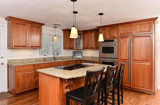 Unique sprawling single family home with attached "In-law" addition. Beautiful 5 BRS, 4.5 BATHS updated Cape in a neighborhood of fine homes-the main home has 4 BRS & 2 staircases.The kitchen features granite with custom cherry cabinets,Sub Zero, Bosch d/w, Thermdor dbl ovens and a 12'x10' breakfast nook.Stunning hardwoods throughout,family rm has natural stone f/p, sun rm w/French doors, living rm & large dining rm, double sliders to composite (32'x12') deck and fenced yard. Second floor offers Master BR/Jacuzzi bath,3 BRS & full bath,room above 2-car garage is 4th BR plus a sitting rm used as an office. Basement has 2 fin rms. The addition is picture perfect set-up w/private entrance, 3rd garage, rear deck w/wooded views, 10' ceilings, living/dining, kitchen bath, bedroom, full bsmt & washer/dryer. Updates: 2-zone central air,roof driveway, irrigation, 4-zone hot water heating. Close to Rts 3, 44 and train.Professionally landscaped w/lush gardens & perennials.Pristine!