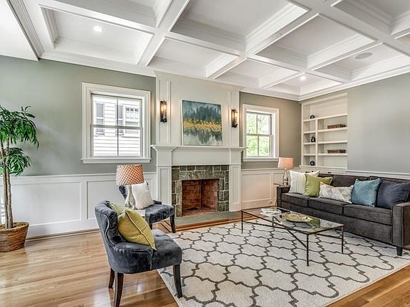 Stunning new construction Colonial in desirable 'Prime Estates' neighborhood. The moment you enter the grand foyer, quality craftsmanship shines with crown molding, wainscoting and coffered ceiling accents throughout. Entertain with style in the fireplaced formal living room and elegant dining room. All will love to gather in the open concept gourmet kitchen as the chef prepares culinary delights with high-end stainless steel appliances, quartz countertops, center island and a seamless transition to the spacious family room with a gas fireplace. A French door connects with a patio and backyard beyond. The master suite impresses with a huge walk-in closet and spa-like marble bathroom with dual sinks, heated floors, curbless shower and soaking tub. Retreat to the finished third level or gather for movie night in the lower level theater. Soundproofed and wired for surround sound with security system for peace of mind. Walk to Newton Center and public transport