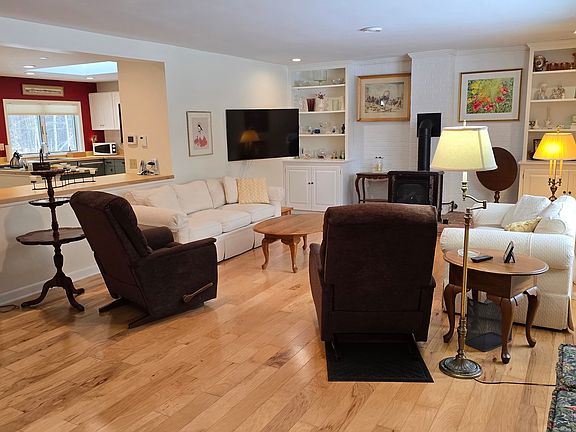This is a beautifully updated ranch home in Quechee Lakes. With an ideal setting on a quiet cul-de-sac, it features an easy level driveway, leading to a spacious garage and oversized mudroom with plenty of storage. You will be delighted by the stylish, modern open floorplan with higher end appliances that are perfect for the home chef! Truly a thoughtfully designed floorplan for entertaining friends and family. The private screened back porch will invite you out for cool summer evenings. Other features include: mini-splits for heating and cooling, a cozy gas stove in the living room, gorgeous gleaming hardwood floors 3 bedrooms, 2 bathrooms, and access to all the recreation of Quechee Lakes!