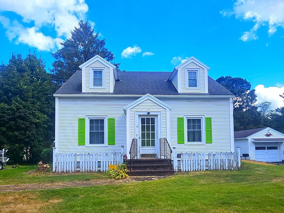 This charming Cape style home is conveniently located on a large lot, situated on a quiet dead-end street in Northeast Rutland City. Close proximity to the bus route, High school, Medical center, shopping, and everyday amenities. The first floor features a spacious front-to-back living room with built-in shelves, a formal dining room with hardwood floors, a kitchen, a full bath, and a bright sunroom perfect for relaxing and enjoying the private backyard. The second floor offers two large bedrooms with beautiful hardwood floors, built-ins, and walk-in closets. The full walk-out basement has double doors offering easy access. Recent updates to the property include a newer roof, and a newer high-efficiency hot water heater. This home also boasts vinyl replacement windows, low-maintenance vinyl siding, central A/C, FHA heating system, a whole-house fan, town sewer, and town water. For winter enthusiasts, convenient access to top ski resorts: it's just 20 minutes to Killington Ski Resort and 40 minutes to Okemo Mountain Resort. This house is ready for new owners to start making their own memories.