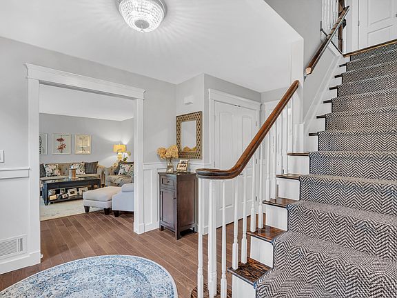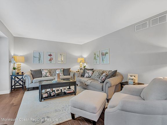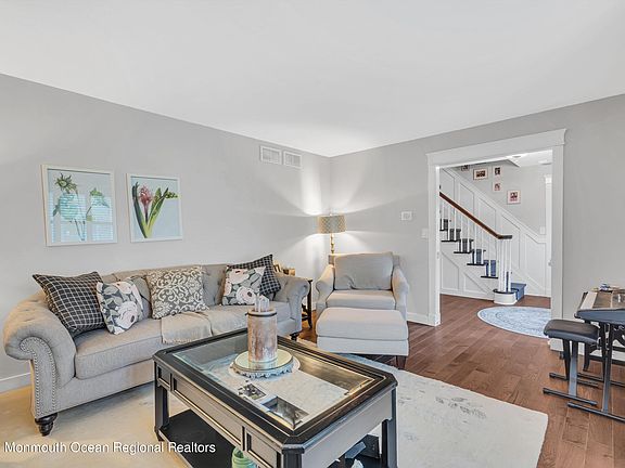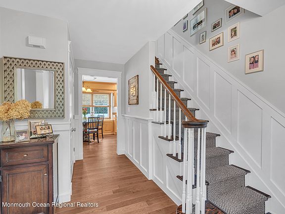 South Middletown offers this updated 4 bedroom 2.5 bath colonial with finished basement and 2 car garage on over sized lot. First floor upgrades include wide plank wood floors, recessed lighting, custom molding throughout. The lower level has formal living room, dining room, family room with fire place, laundry, and half bath. Newer eat in kitchen with center island, stainless steel appliances, quartz countertops, and tile backsplash. Second floor offers 4 large bedrooms with hardwood floors and recessed lighting, and updated full bath. Master suite has full tiled bath and walk in closet. Exterior features include newer inground heated pool with pool house, paved patio, and vinyl fenced 3/4 acre yard. Close to NYC transportation and downtown Red Bank.