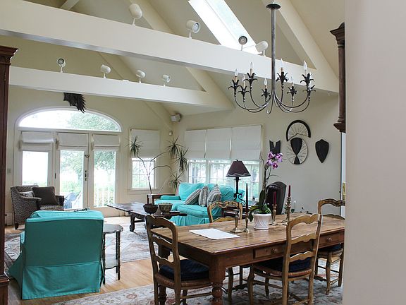 Waterfront. Dock. Sheltered Sandy Beach. Privacy. Now just add this beautiful shingled home with contemporary lines surrounded by stone patio and perennial gardens and located on the east branch of the Westport River all of which slowly reveals itself as you meander the inviting lane-like drive. Nature and the river's presence are felt from every beautifully designed room starting with the open living/dining area which features a cathedral and beamed ceiling and a double sided fireplace, the efficient kitchen, and the classic picture perfect solarium. Master bedroom with fireplace, radiant heat, deck, and bath that provides a Jacuzzi with a view. A second bedroom, bath, and laundry complete the first floor. Another full bath and bedroom with balcony are found on the second floor. So just set your chair on the beach, swim, kayak, canoe, or launch your boat all from your very own backyard. This property has it all.