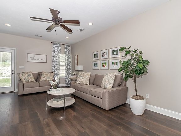 Charming ranch style home that is better than new and qualifies for 100% financing! The spacious living room features beautiful upgraded hardwood floors and is open to the eat in kitchen. The kitchen has stainless steel appliances, ample counter space and overlooks the large backyard. Owner's bedroom includes tray ceiling, ceiling fan, large walk-in closet and an ensuite with double sinks and large shower. There are two additional generous sized bedrooms with a full bathroom. The back patio is perfect for entertaining with privacy overlooking the large backyard!