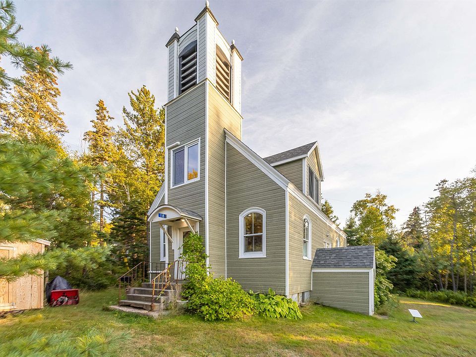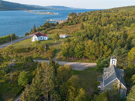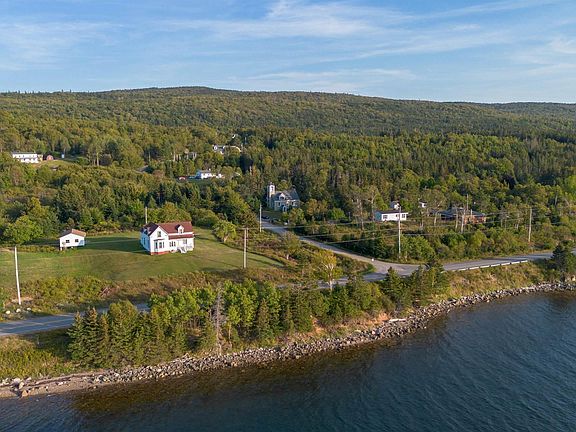 Located in Englishtown and just steps from the water, this one-of-a-kind property offers captivating views from every angle. From the side deck you can enjoy water glimpses, while sweeping vistas from the upstairs bedroom windows make this home truly special. Once an active church, the building has been thoughtfully reimagined into a stunning residence, seamlessly blending historic charm with modern comforts. The main floor showcases the original hardwood flooring and soaring ceilings, with tall windows that flood the open living area in natural light. Painted pine walls and ceilings create a warm, welcoming ambiance, while the former altar has been transformed into an inviting sitting and entertaining space. Off the main living area, the kitchen features efficient design and open shelving. Upstairs, the primary bedroom enjoys expansive water views through the large polytech tilt & turn windows. The spa-like bathroom offers a deep soaker tub and stand-up shower, while an adjoining versatile room provides the option for an office, reading nook, or walk-in closet. The home is comfortably heated with electric baseboards, heat pumps on both levels, and a cozy pellet stove in the living room. The unfinished basement, with concrete floors and a walkout, houses the utilities and provides ample potential for future development. Since 2000, the property has seen extensive upgrades including a full re-wire and 200-amp service, upper-level bedroom construction, new windows throughout, multiple heating systems, updated siding, blown insulation throughout and a newly re-shingled roof in 2024. A truly unique property offering character, history, and modern living, all within a convenient location: only 20 minutes to Baddeck, 30 minutes to North Sydney, and just 7 minutes to Highway 105. You will not want to miss your chance at this unique and beautiful offering.