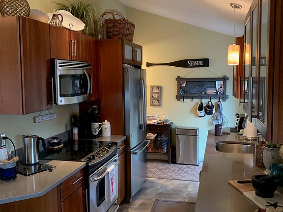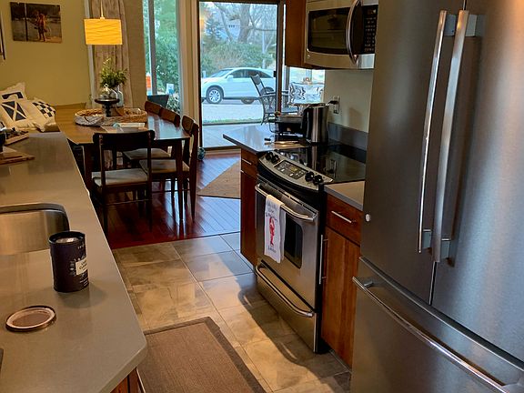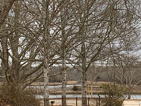 Summer ready! Bright open airy updated chalet style ranch with oversized covered porch for relaxed lounging and entertaining. One floor living! Completely renovated: new roof, tankless on demand hot water, solar panel electric, oversized outdoor shower with changing area, fire pit, shed, great room with remote controlled gas fireplace and custom solid wood mantle, integrated dining area w/wraparound bench seating and under storage cabinets, galley kitchen with modern cherry cabinets and brushed nickel pulls/handles, silestone counters, brazilian cherry hardwood floors, cathedral ceilings, winterized, updated electrical and pex plumbing, Anderson windows with screens, jacuzzi bathtub, flagstone walkway, private back yard, peekaboo water view through master bedroom window, natural gas outdoor grill hookup, forced hot air heat, spacious driveway, walk to marina and private beach, clamming, and community dock. Flood insurance quote appr. $1,400/year