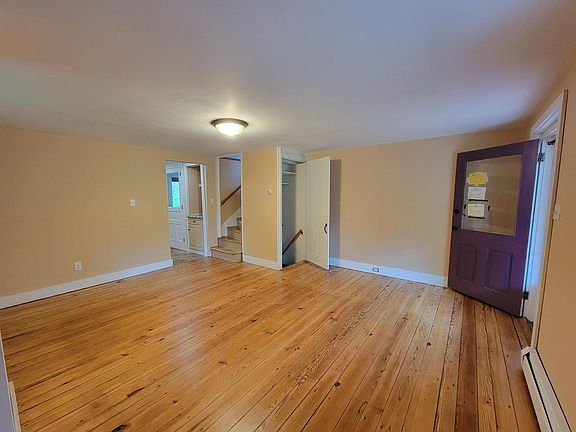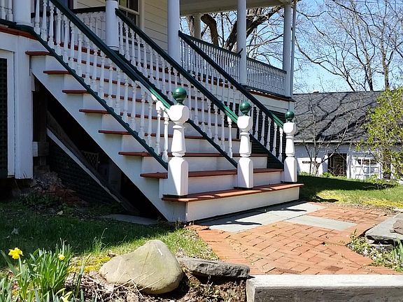 This apartment, or half house, for rent is in the fantastic riverfront town of Frenchtown. This town has great restaurants, and a vibrant arts community including the new venue of Art Yard. The house is close to the heart of the town. This is a great little town tied to the riverfront. There's bicycling and hiking on the Rails to Trails, and just across the Delaware River, the Delaware and Raritan Canal towpath. There's also nearby rafting, swimming or fishing. The 1840s and early 1900s house exudes Currier & Ives charm, in a setting with a hedge of lilacs in the front, and banks of perennials including hostas, Lilly of the Valley, daffodils and fern in the back. This apartment is in a 2 family house, side by side. The apartment has 2 Bedrooms with refinished hardwood floors. The large bedroom in the back overlooks gardens with a French balcony. Both bedrooms have ample closet space the full width of the rooms. There is a large eat in kitchen with a new sink and countertops and a dishwasher. The living room has 1800s random plank flooring. There is a gorgeous wrap-around porch with a door to the living room and another door to the kitchen. The porch also exits to the side yard and the rear patio. The gravel patio is nestled into fieldstone retaining walls. The bath has a new tub, tile, wrought iron hardware, and a farm style sink. A shared rear foyer has a coat closet for each apartment. The house has an attic for storage, and washer and dryer hookups are in the basement. There's off street parking behind the house. The heat is by oil furnace with hot water baseboard. The apartment has all new Anderson windows, blown in insulation, newly refinished hardwood floors, new flooring in the kitchen, and is freshly painted. The electrical circuit panel was just upgraded. The porch was just restored. We're just now putting the finishing touches on the renovations. It's available at the end of the month. Bedroom large in the back, with French Balcony: 11'-2" x 16'-4" plus 11' of closet Bedroom small in the front: 12'-2" x 7'-11" plus nearly 8' of closet Living Room 15'-4" x 16'-4" Kitchen 15'-10" x 11'-1" Upstairs hall with linen closet Shared Rear Foyer with coat closet Attic storage Basement with laundry hookups Frenchtown is 15 minutes west of Flemington on the Delaware River. It has great restaurants, biking and walking on the rails to trails along the river, a boat launch, and great boutique shops. The area is set in the rolling hills of Hunterdon County, a destination for those looking to go hot air ballooning, canoeing, kayaking, or checking out the wineries, the Ironbound Cider, or the many local breweries. One can find great local cheeses and breads at Bobolink. Nearby are two small airports for flying or sky diving. Frenchtown is upriver from the other great riverfront towns of New Hope, Lambertville, and Stockton. The rent is $1,950/ mo. + utilities, (1.5 month security deposit, plus payment of the balance of the oil in the tank required) Tenant pays for oil, electric, phone or internet utilities Life is good. Owner pays for water and sewer. Tenant pays all other utilities. Parking for up to 2 cars is in the rear. No smoking. Barbeques not allowed on porch. Any pets are to be OK'd in advance by the owner, and with an additional pet security deposit.