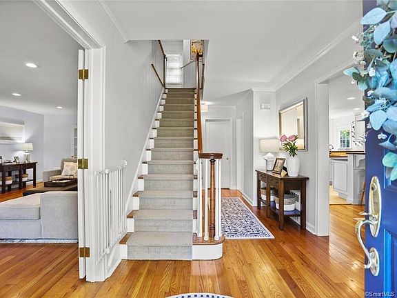 Impeccable stone front colonial located in highly desirable Wolfpit neighborhood bordering Westport. Absolutely move-in condition. You feel warmth and comfort as soon as you walk in with superb curb appeal. Elegant formal entry hall with hardwood floors. From formal entry hall you enter into the beautiful large living room with gorgeous hardwood floors and FPL. From Living room you enter thru french doors to family room with built-ins and french style doors to deck. Open concept modern kitchen with granite counters, double breakfast counters, plenty of cabinets space and counters, tile backsplash, all stainless appliances. Formal Dining room with crown moldings and wainscoting opens into the kitchen. Family room and kitchen has access thru french style doors to a large deck for your summer gatherings and entertaining. Upstairs offers the Master suite with brand new Master bath (2021) and lovely balcony for that first cup of coffee or late evening glass of champagne. Additional 3 family bedrooms that share an updated hall bath. Full basement with great storage. Beautiful level landscaped .41 acre property. Easy access to fine dining, shopping, beaches, parks, schools and trains. Perfect place to call home.