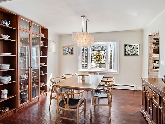 Nestled into the corner of sweet cul-du-sac just 3/4 mile from the Pelham train station, this tidy home has everything you need for "work at home", homeschool, or grill and chill on the giant deck. Kids can safely ride bikes around the block which is "one way in and one way out"--and end up back at home! Enjoy an open flow from room to room including a welcoming wood burning stove which warms up the first floor, saving lots of $$ on your utility bill. The kitchen and powder room lead to a door open to a giant deck which overlooks sunsets over Pelhamwood. Upstairs there are 3 good size bedrooms and full bath. The walk out lower level is bonus space with a huge covered patio..enjoy family meals outside in the warm weather. 3 cars fit easily in large driveway.