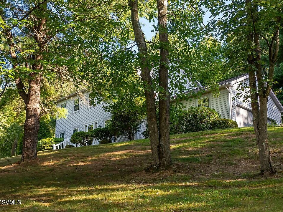 Welcome to this beautifully updated two-story home in the desirable Valley Green Development, set on a wooded lot with spectacular hillside views. Featuring 3-4 bedrooms and 2.5 baths, this residence offers the best of both worlds—peaceful privacy with the convenience of being just minutes from town. Step inside to an inviting floorplan designed for today's lifestyle. The kitchen boasts abundant counter space, new appliances, updated lighting, and an adjoining dining area that flows seamlessly for entertaining. The living areas are warm, functional, and ideal for gatherings. This home has been thoughtfully improved inside and out with attention to detail at every turn. Recent updates include a new roof, new deck, and a new heat pump (2018), CLICK ''MORE' plus most doors and windows have been replaced. The owners have added beautiful new flooring in the foyer, kitchen, dining area, and powder room, as well as stylish bath fixtures. The completely reimagined owner's bath offers a modern retreat, and a convenient second-floor laundry was added (easily converted back to a fourth bedroom if desired). Custom touches continue throughout - new custom blinds throughout, professionally designed closets with shelving systems by Closets by Design, a new water heater, and a whole-house water filter system. The garage has been upgraded with new insulated doors, hardware, openers, and keypad, while the exterior features redesigned landscaping, including a rock wall along the driveway for extra curb appeal. This property is truly in move-in mint condition offering comfort, style, and countless improvements in a highly sought-after neighborhood. Don't miss the opportunity to make it yours! Contact us today to schedule your private showing and make your next address Valley Green!