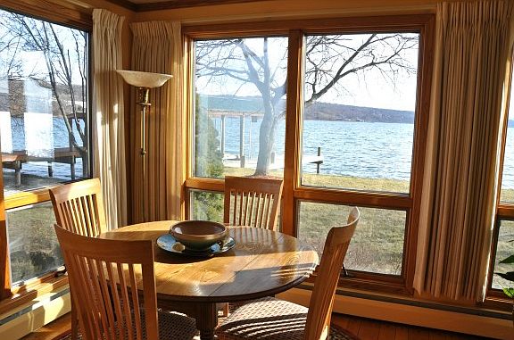 At the corner of "every day is a lake life vacation" & spacious year round home, this exquisite 2600+ sq ft Contemporary home with private apartment is minutes from Ithaca yet a world away. There are 3 beds and 3 FB in the main home. The master suite is on main floor with access to private deck facing West. 140 feet level grass lawn yard and two docks, the sunrise dock & sunset dock Hardwood floors, cathedral ceilings, fireplace completely renovated kitchen w/ maple cabinets & granite ct. Apt rents $850 plus utilities. Parking also on auxiliary lot w/ storage. Life is short live on the lake!