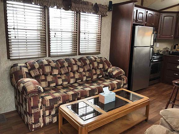 Voted one of the best campgrounds around, Totem Pole has everything you could ask for, 600' of sun baked sandy beach on Ossipee Lake! Association boat launch, potential mooring, clubhouse, mini golf, horse shoe pits, tennis, numerous play grounds, post office, coin laundry and much more. This like new Kropf park model home is as top notch as the campground. Upgraded stainless steel refrigerator, gas stove and kitchen sink(with view of lake), plenty of cabinet & counter space make cooking easy and enjoyable, that is when you have to be inside! Open floor design for kitchen living area, vaulted ceiling with lots of natural light creates a nice open feel. wall of cabinetry holds the tv, surround sound and an electric fireplace for a cozy feel on rainy nights! 3/4 bath upgraded with porcelain sink and toilet. Full size shower too! Bedroom has plenty of closet and draw space, charging station at the night stand and hidden storage under the queen size bed! You'll spend more time outside come summer, either at the beach just steps away, out under the canopy or relaxing in front of the fire on you personal patio. Home was positioned so you could add a room and a wrap around deck if you need more room! Located as close to the lake as you can get! The general store, ice cream shop, community center and more are close by for easy access. And of course that gorgeous beach area! Totem Pole is open approximately 11 months of the year, so enjoy summer, fall and winter at your gorgeous new home! Don't wait units like this go fast. Park provides water, septic, storage for boats in off season. So come now, don't wait, once you come through the gated entry, your cares will drift away in the soft summer breezes, you'll never want to leave, almost no need to do so, with post office, coin laundry, trash station, general store and general convivial atmosphere of the great campground. Totem Pole you own the lot your unit sits on! So what are you waiting for.... summer will be here soon!